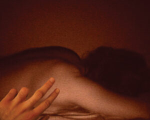 In a grainy video (night shot) presented like a painting, a naked woman is lying with her back to the viewer. The screen surface is touch sensitive. A sensual, erotic relationship begins with the image.